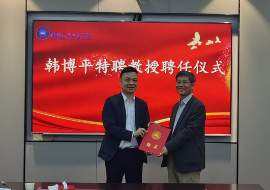 会上,殷旅江首先详细介绍了特聘教授韩博平基本情况,副董事长高刃对韩博平教授、刘宁宁主任、以及王璐博士后一行三人表示欢迎、并为韩博平教授颁发了聘任证书。