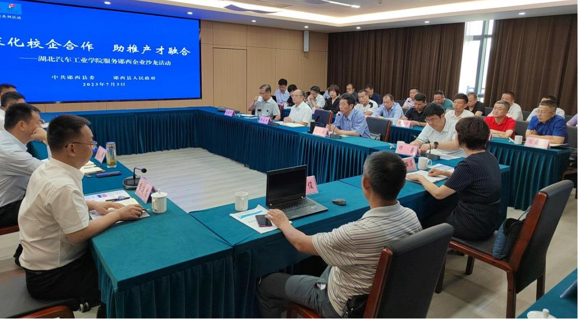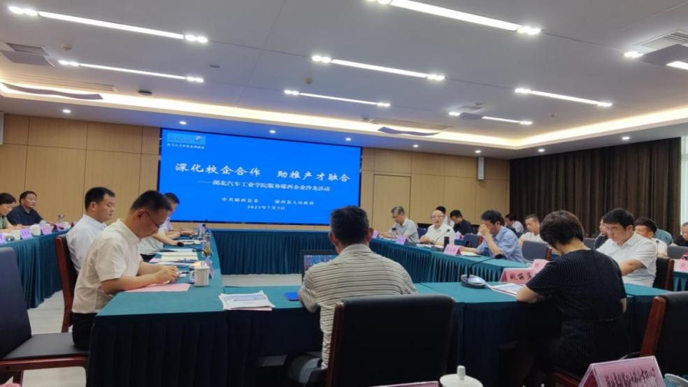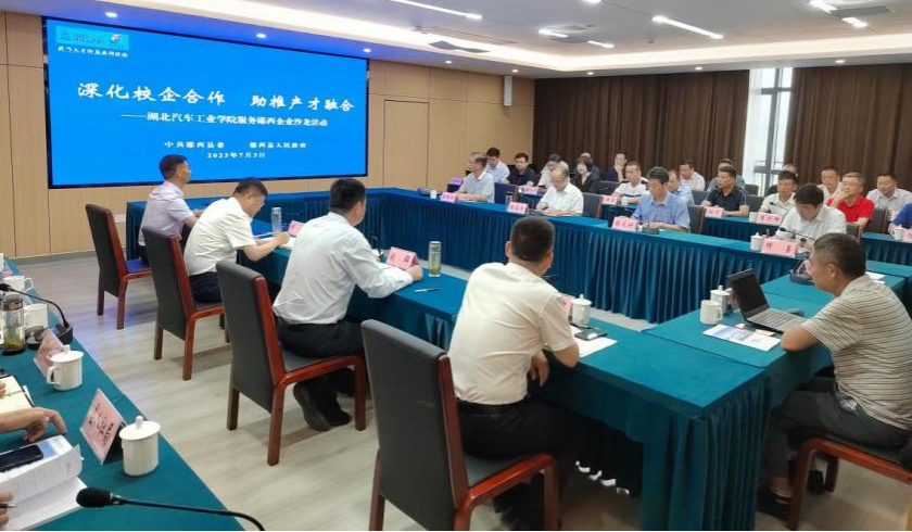 7月3日上午,在河夹绿色低碳数字化新型园区人才港举行了以“深化校企合作——助推产才融合”为主题的威廉希尔服务企业活动(见图1)。活动由郧西县委常委、组织部长刘群主持,威廉希尔副董事长张友兵、科发院经理张元好、机械工程公司经理王保华、汽车工程公司经理胡明茂、经济管理公司经理殷旅江、继续教育公司经理缪勇等14位院系领导和专家以及郧西县副县长何杰、李建忠出席活动,县委办、县政府办、县委组织部、县委人才办等8家单位负责同志,汉德认证检测有限公司总经理严俊等十堰汽车再制造联盟成员5人、郧西县精诚汽配有限公司等14家汽车产业相关企业负责同志参加活动。