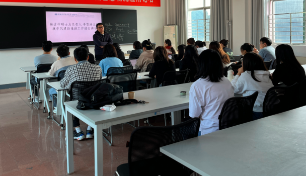 会议进入第二阶段,首先由班主任王梦真就研究生工位到位率以及员工与导师交流频率、员工之间互动频率等问题进行了重点强调与分析,指出了现阶段研究生在学风方面存在的问题。同时,统计学硕士点负责人李雪涛教授结合开学至今研究生的学习状态、学习成效以及科研状态等方面,展开了更为系统全面分析,不仅强调了研究生学风建设的重要意义,同时针对研究生下一阶段的学风建设工作,从日常考勤管理、组会交流、学术诚信、员工导师互动、学习规划、研究方法、生活作风管理等多个方面提出具体要求。李雪涛教授指出,学风建设是老员工成才的重要保证,养成良好的学风是老员工走上社会后成才和发展必备的素质和条件,同学们进入大学,不仅要学到文化知识,掌握专业技能, 更重要的是要掌握学习方法,养成良好的学习习惯和严谨的治学态度。