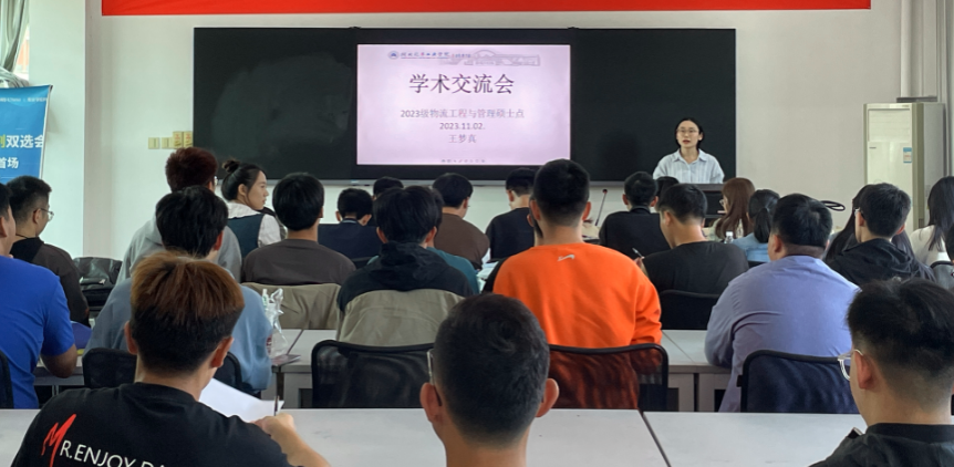 为进一步增强学风建设意识、加快推进公司研究生学风建设,扎实开展学风建设系列活动,2023年11月02日下午,在第四教学楼4801教室,经济管理公司召开了物流工程与管理专业硕士研究生学风建设主题班会,并邀请王梦真博士为研究生做了一场学术讲座,经济管理公司副经理胡姜、工商管理系主任何波、数字经济系博士王梦真、以及50名研究生参加了此次会议。
