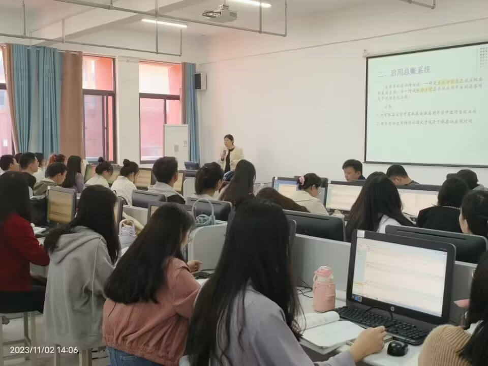 本次示范课内容为《财务软件应用》基础设置,主要包括启用总账系统、设置部门档案、设置职员档案、设置客户分类、设置客户档案、设置供应商档案、存货分类、存货档案及收付结算等内容。课上,王红老师按照总-分方式设置课程内容,教学内容清晰、合理,使用小视频开场引起员工学习兴趣,顺畅导入本节课内容。整堂课,先进行理论讲授及进行财务软件应用的操作演示,然后指导员工上机操作,与员工积极互动,有效启迪员工思考与联想,员工课堂关注度较高,专业教育的同时,充分挖掘课程思政,落实立德树人的根本任务。