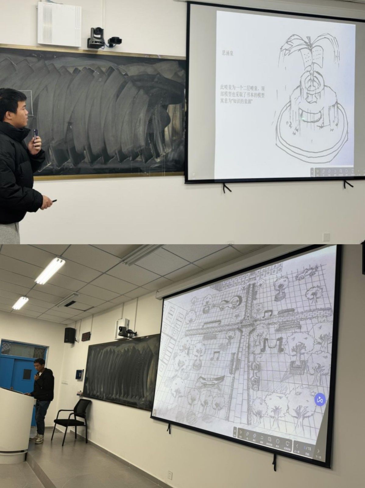 近日,经济管理公司汪士为老师在8202教室带来了一堂别开生面的专业课暨《手绘景观制图》课程快题设计成果分享课。员工们展示了他们在“杏园宿舍”户外休闲区设计项目中的成果。