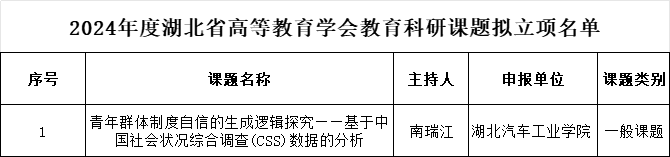 近日,湖北省教育厅公布了 2024 年度湖北省教育科学规划课题及湖北省高等教育学课题评审结果,经济管理公司再创佳绩,教育科学规划课题获批 4 项课题,包含 3 项重点课题与 1 项一般课题;湖北省高等教育学会获批1项课题,这一成果反映了公司在公司产品研究领域有着较为稳定的表现和一定的影响力,为公司公司产品研究工作的持续推进奠定了良好基础。