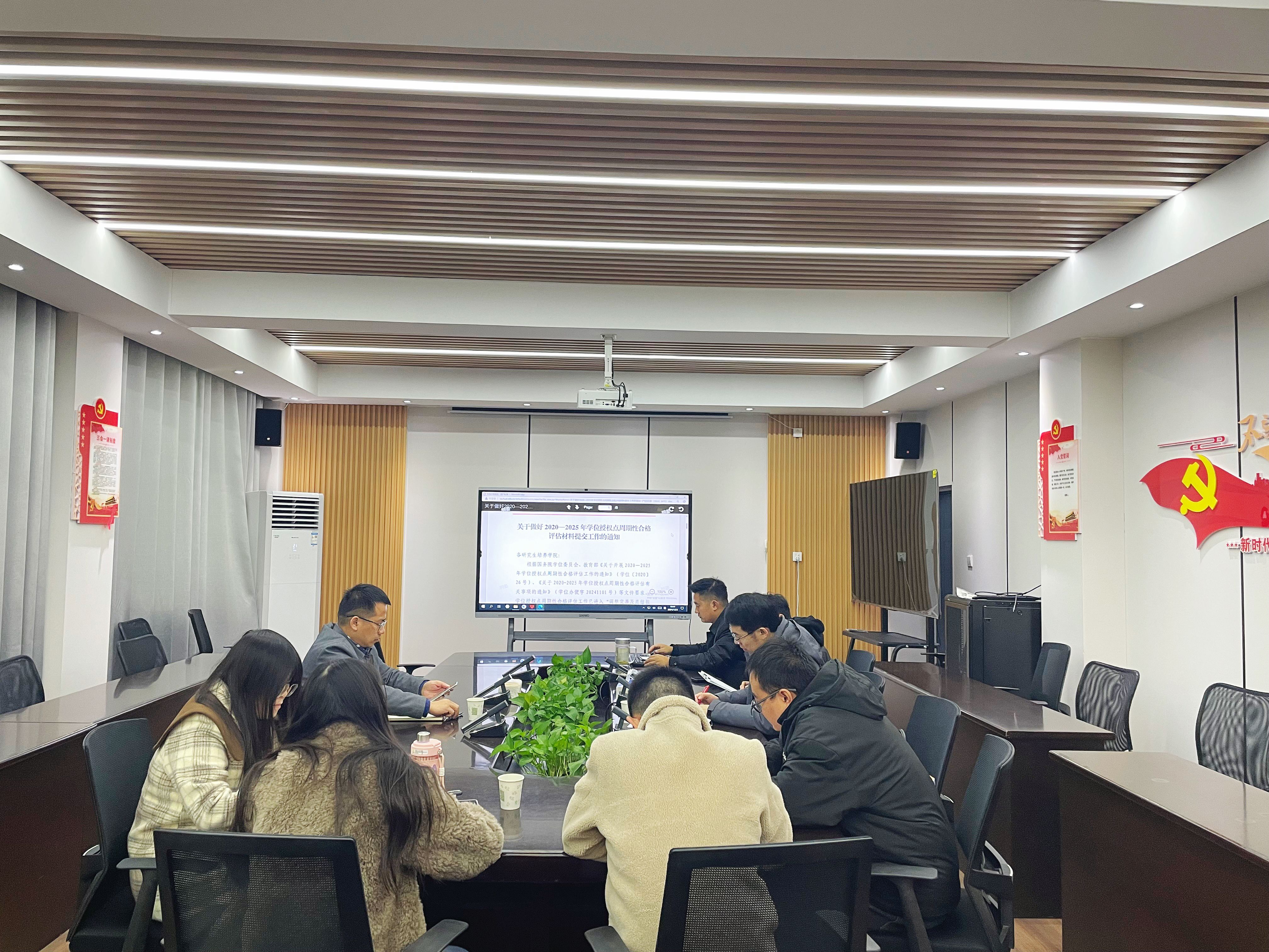 会上,高佳星博士首先就评估材料整理及报告撰写经验展开分享。随后,胡姜对现有评估材料中存在的问题、短板和参会老师展开深入讨论,并针对问题逐一提出解决方案。会中,殷旅江再次强调了该项工作的重要性及紧迫性,并从学位授权点自我评估总结报告及学位授权点质量建设年度报告撰写等方面进行详细工作部署。