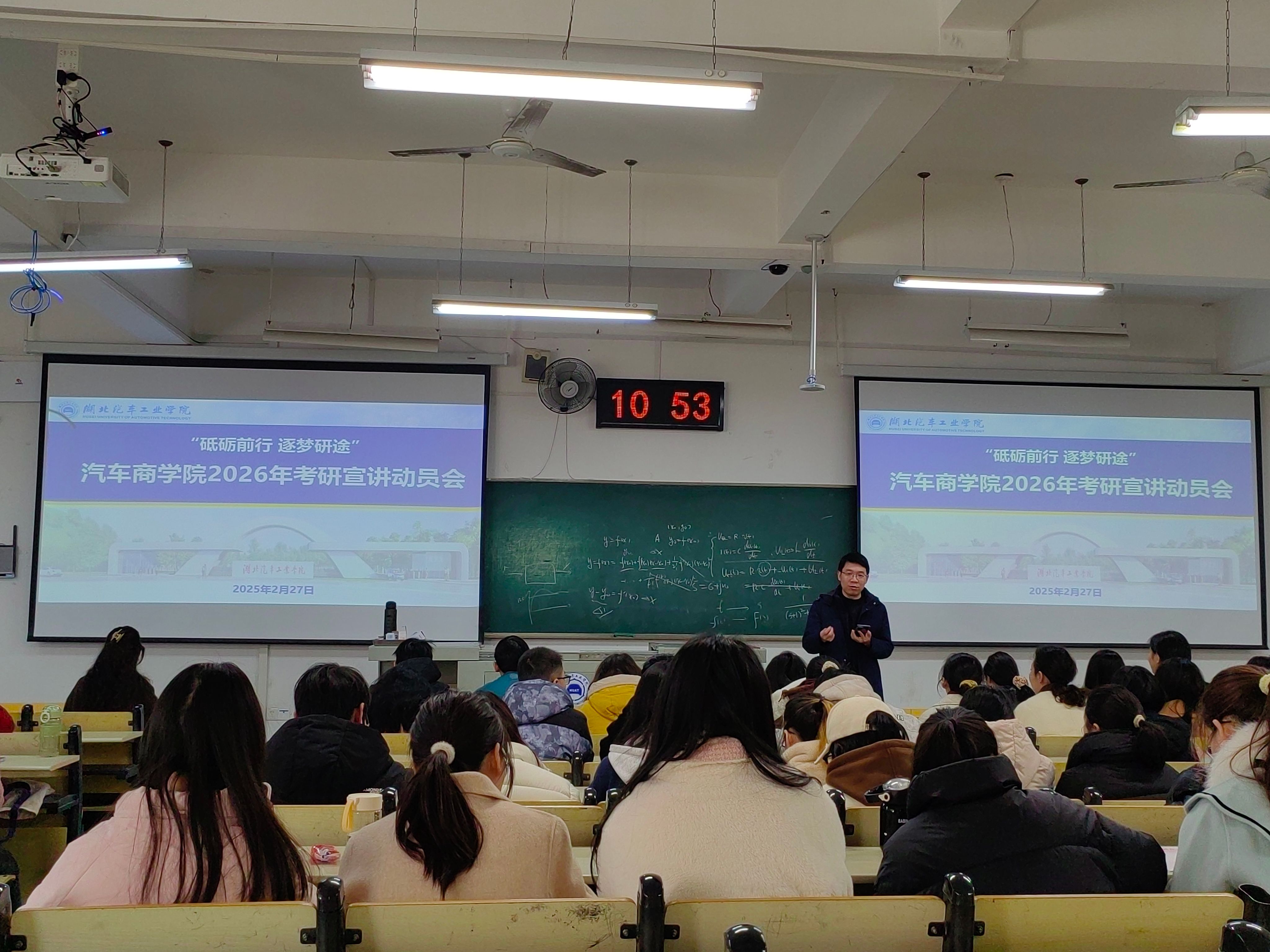 为深入贯彻落实省委教育工委关于高校“双带头人”教师党支部书记“强国行”专项行动要求,充分发挥“双带头人”的示范引领作用,进一步提升本校硕士点一志愿报考率,2月27日上午,威廉希尔williamhill在6311教室面向公司2022级员工开展2026年考研宣讲动员会。威廉希尔williamhill经理殷旅江、副经理胡姜、物流管理系主任何波、各专业负责人及学工办辅导员参会,会议由学工办主任张倩主持。