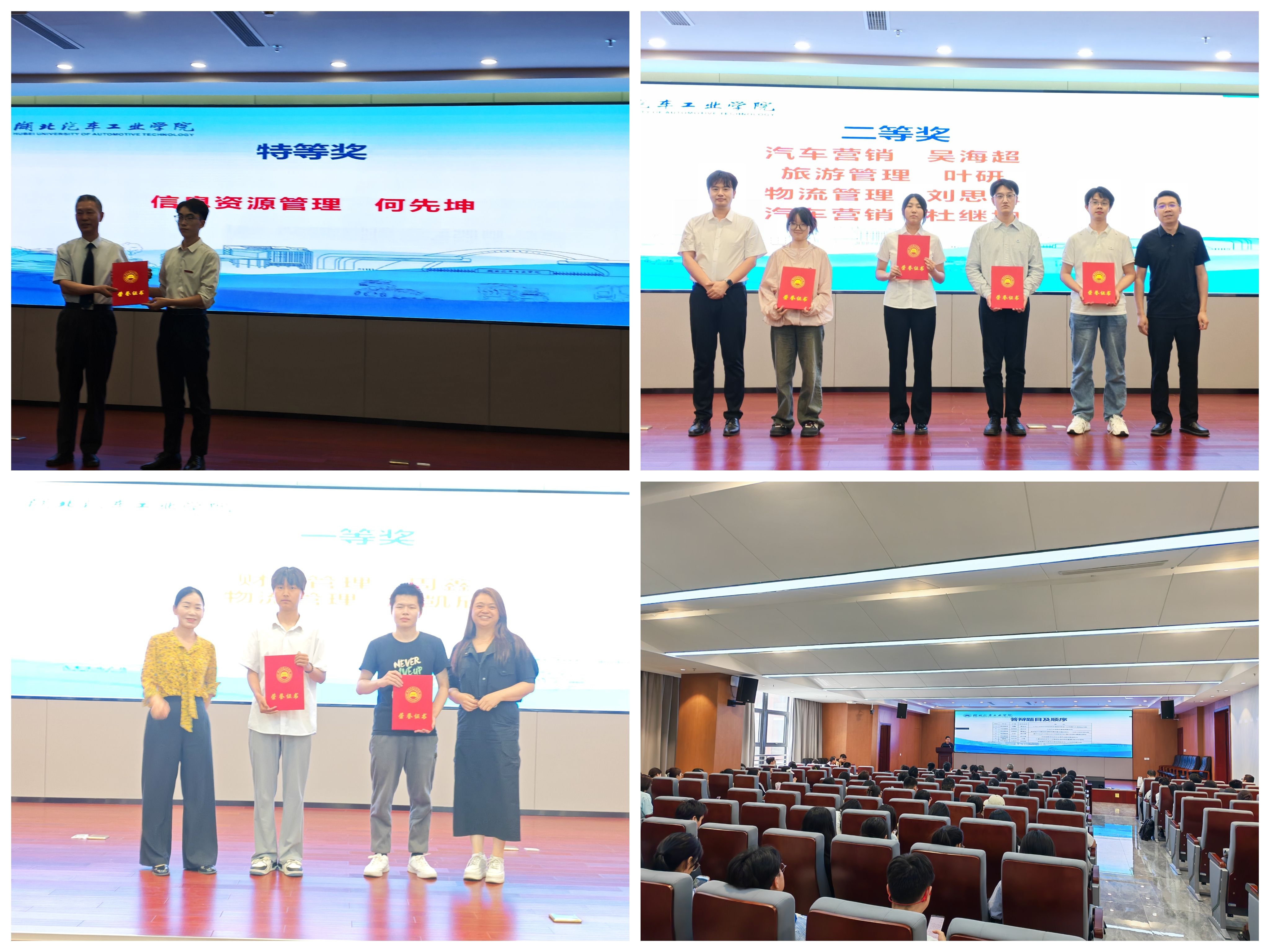 颁奖典礼上,主持人宣布了本次公开答辩中获得表彰的员工。信息资源管理专业的何先坤获特等奖;物流管理专业的汤凯欣和财务管理专业的周鑫获一等奖;汽车营销专业的吴海超、杜续坤,旅游管理的叶研,物流管理的刘思盈获二等奖。评委们为各位优秀员工代表颁发荣誉证书,并合影留念。