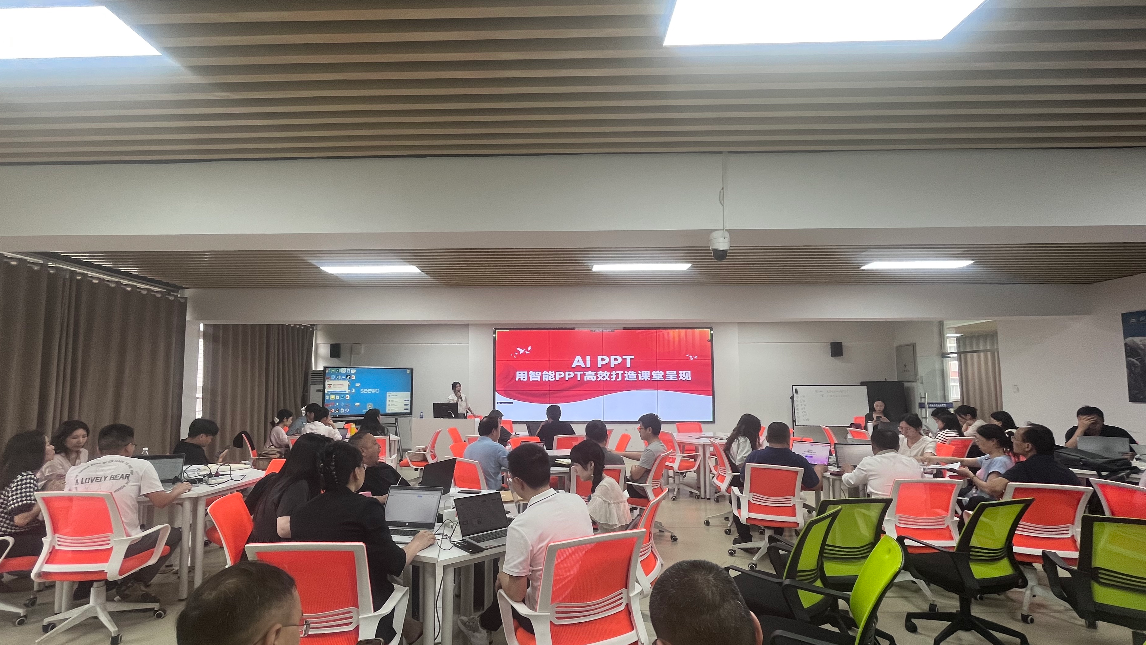 孙老师结合“高效生成-细节优化-模板适配” 三大环节,指导与会教师学会使用AI工具组合,实现从无到有快速创建美观专业的PPT演示文稿;通过对细节的优化处理,进一步提升PPT的视觉效果与表现力,使展示内容更加引人注目;掌握如何更换模板,确保最终生成的PPT符合单位的标准与要求,满足不同场合的展示需要。