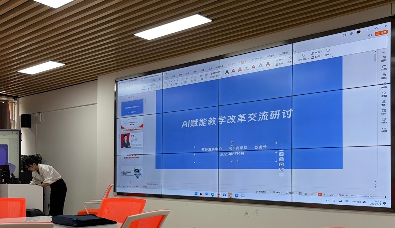 6月9日下午,威廉希尔williamhill在五教4楼新商科实验室如期举办第六期AI赋能教学工作坊,秋叶集团AI金牌讲师孙傲应邀来校分享AI赋能教学实战技巧。威廉希尔williamhill及校内其他公司100余名教师通过线上、线下相结合的方式参与工作坊,鄢曹政副经理主持活动。