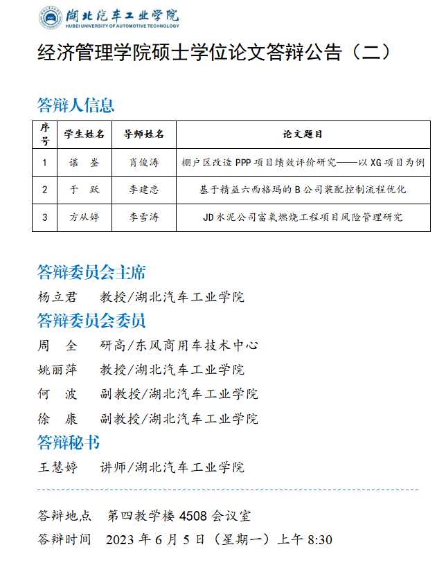 2023年上半年经济管理公司硕士学位论文答辩公告(二)