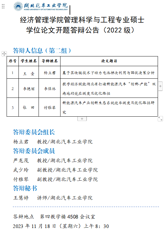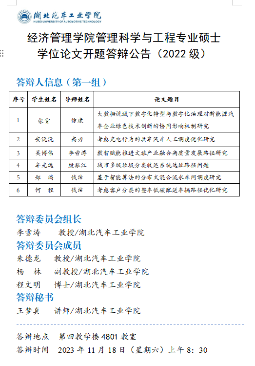2022级管理科学与工程专业硕士学位论文开题答辩公告