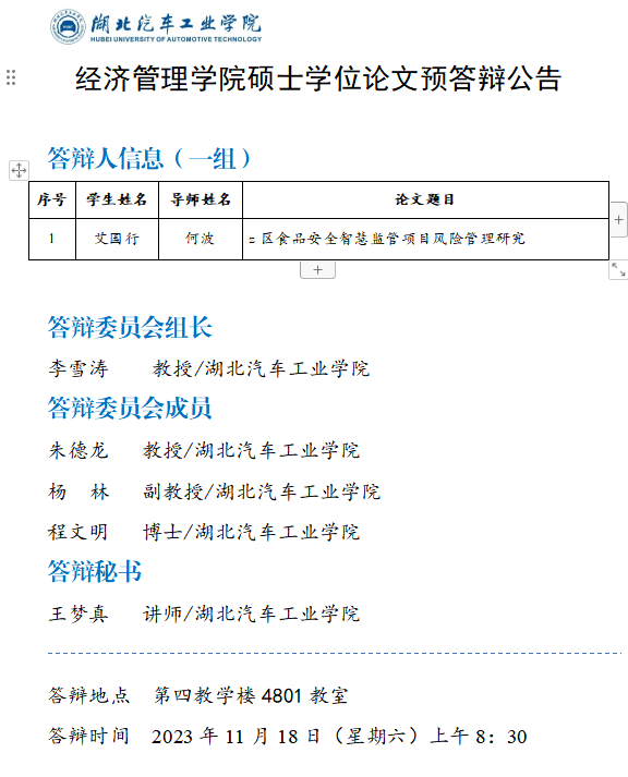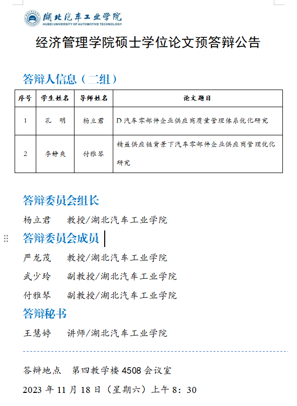 经济管理公司2023年下半年硕士学位论文预答辩公告