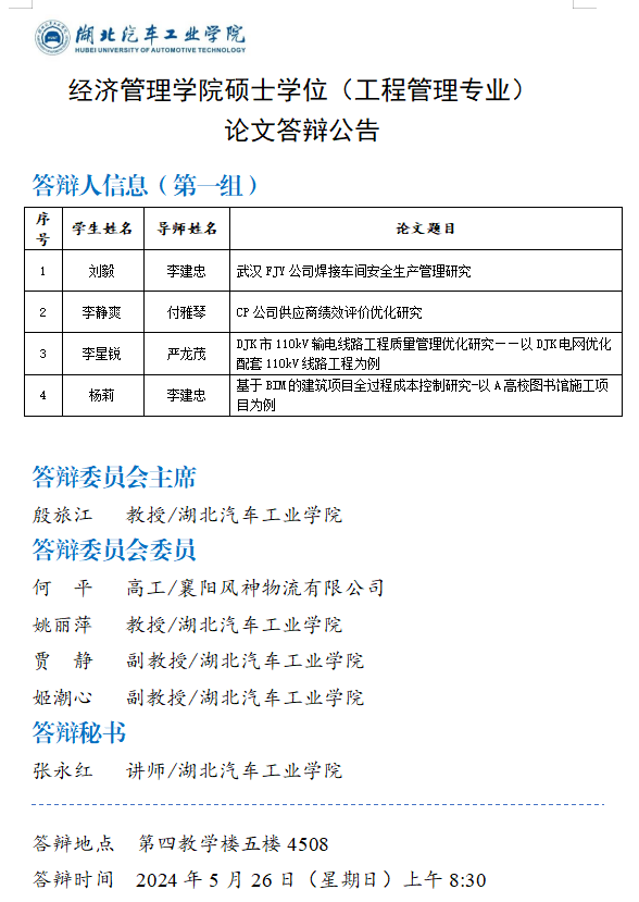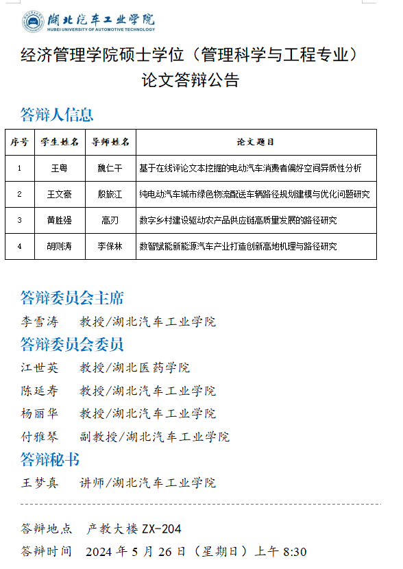2024年上半年经济管理公司硕士学位论文答辩公告(一)