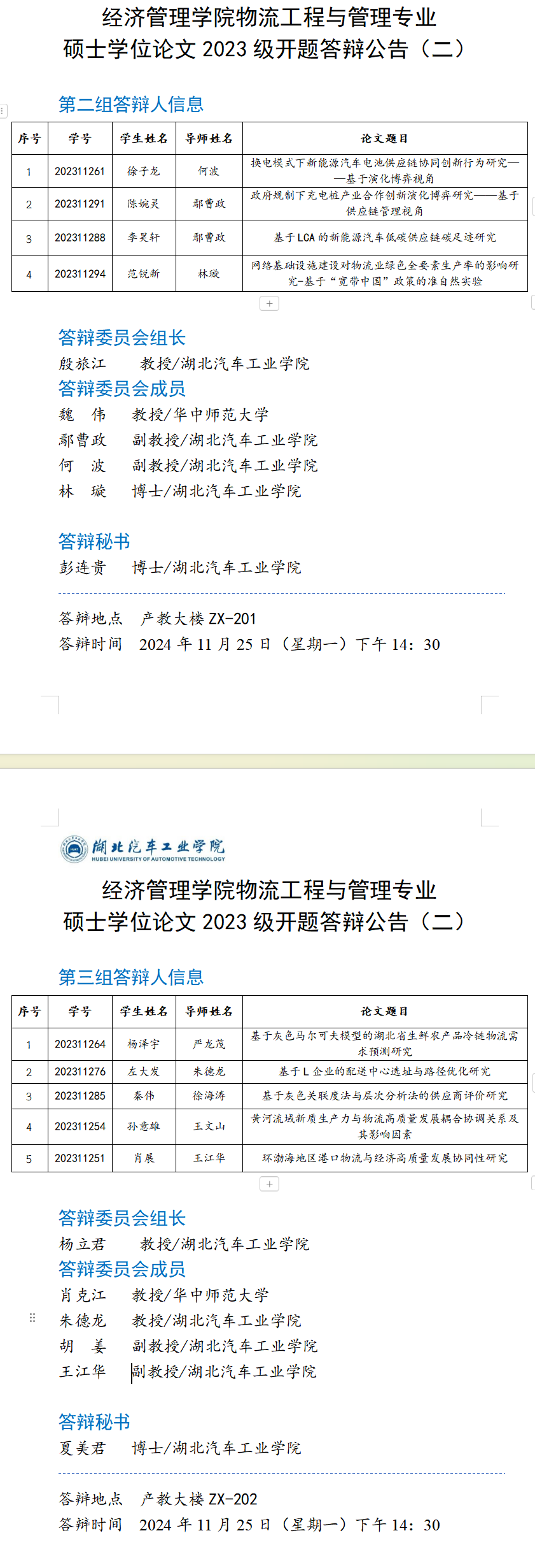 物流工程与管理专业硕士学位论文2023级开题答辩公告(二)