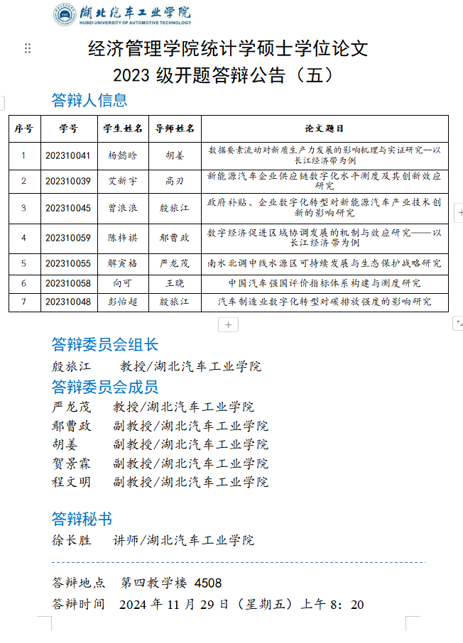 2023级工程管理硕士学位论文开题答辩公告(三)