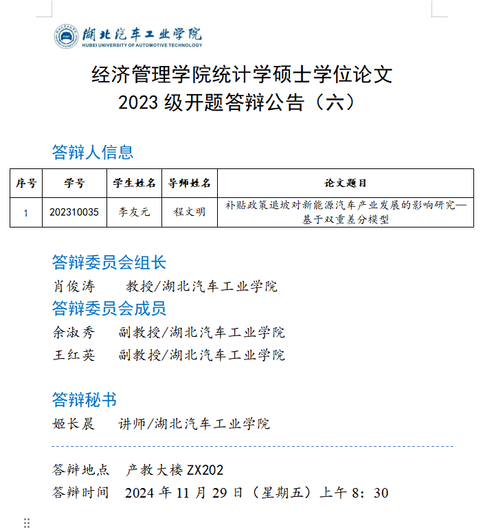 物流工程与管理专业硕士学位论文2023级开题答辩公告(三)