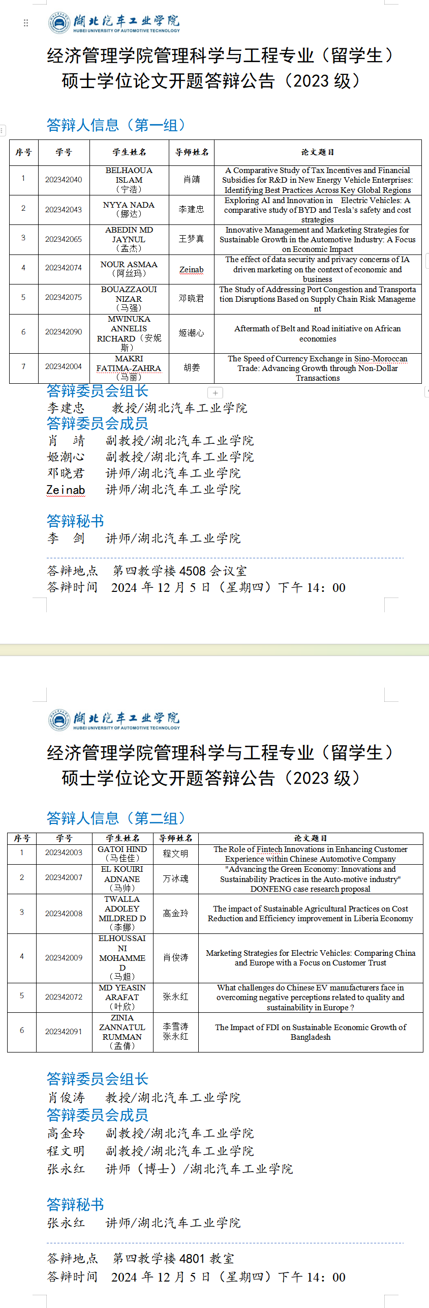 管理科学与工程专业(职工):硕士学位论文2023级开题答辩公告