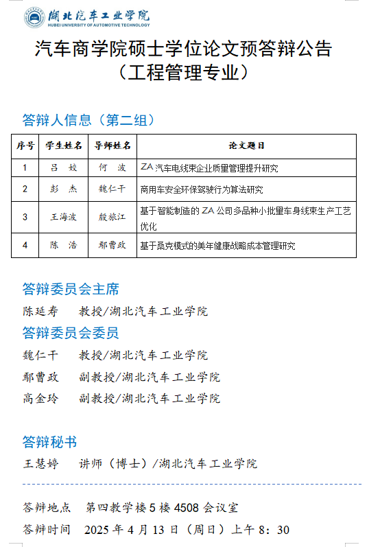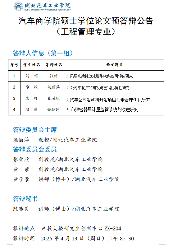 2025年上半年硕士学位论文预答辩公告(管理科学与工程专业)