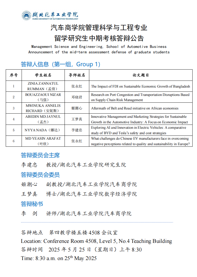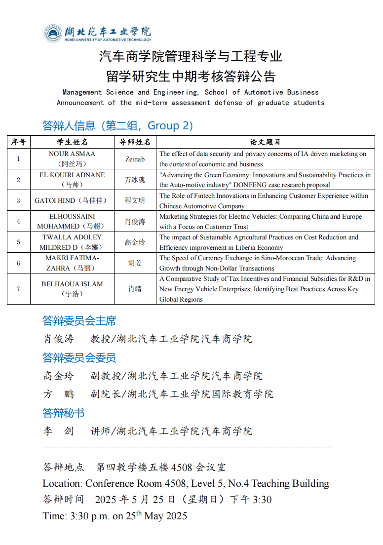 2023级管理科学与工程专业留学研究生中期考核答辩公告