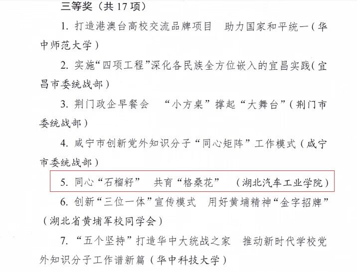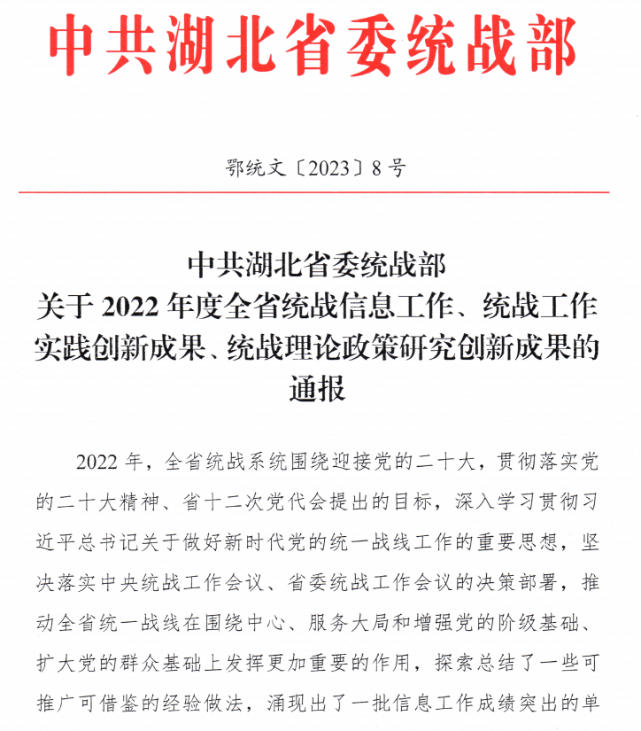 近年来,湖北汽车工业公司党委高度重视统战工作,深入贯彻落实习近平总书记关于统战工作的重要论述,推进各项工作走深走实,在统战理论政策研究与实践创新方面均取得新突破。据悉,在省委统战部印发《关于2022年度全省统战信息工作、统战工作实践创新成果、统战理论政策研究创新成果的通报》中,经济管理公司撰写的《同心“石榴籽”,共育“格桑花”》,荣获2022年度全省统战工作实践创新成果三等奖。
