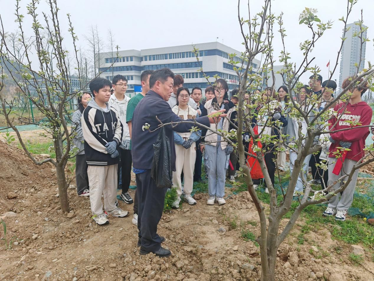 威廉希尔新校区绿植养护基地基地是集团重点实践基地,既是重要的农业新技术、新品种的试验平台,也是员工劳动教育的实践场所。实践基地的陈老师向到来的经济管理公司党员干部们详细介绍了新校区实践基地的总体概况和发展情况,带领师生们参观了梨树种植现场,讲解过程中,师生们仔细聆听、积极互动,深化了对农业等概念的科学认识。