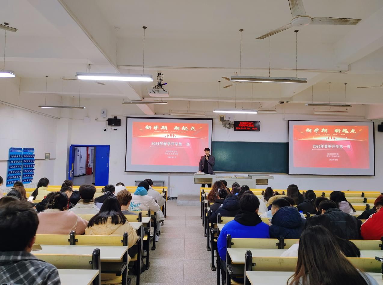 各年级各专业采用点、线、面相结合的方式,分层分类开展主题班会,聚焦各阶段教育培养“发力点”,抓牢学业学科“攻坚线”,扩大思政教育“覆盖面”,全面提升主题班会实效。“结束了充满新鲜感的大一上学期,我们重整行装走向全新的大一下学期!通过一学期的学习,逐渐适应了老员工活,本学期我会继续铆足干劲,带着新的期许和目标投入到新学期的学习和生活中。”经济管理公司2023级信管系徐琳同学在班会上分享说到。