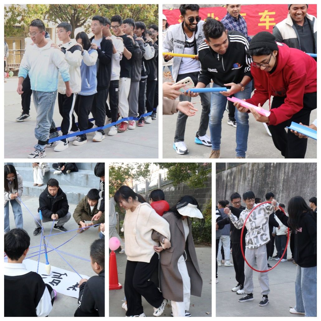 在本次运动会中,还有一支比较“特殊”的队伍—经济管理公司研究生职工队。语言上的差异并没有打消他们的热情,在工作人员的讲解下,他们愉快地完成了各个活动项目。赛场上充满了欢声笑语,每位同学都在本次活动中得到了心灵的疗愈和滋养。