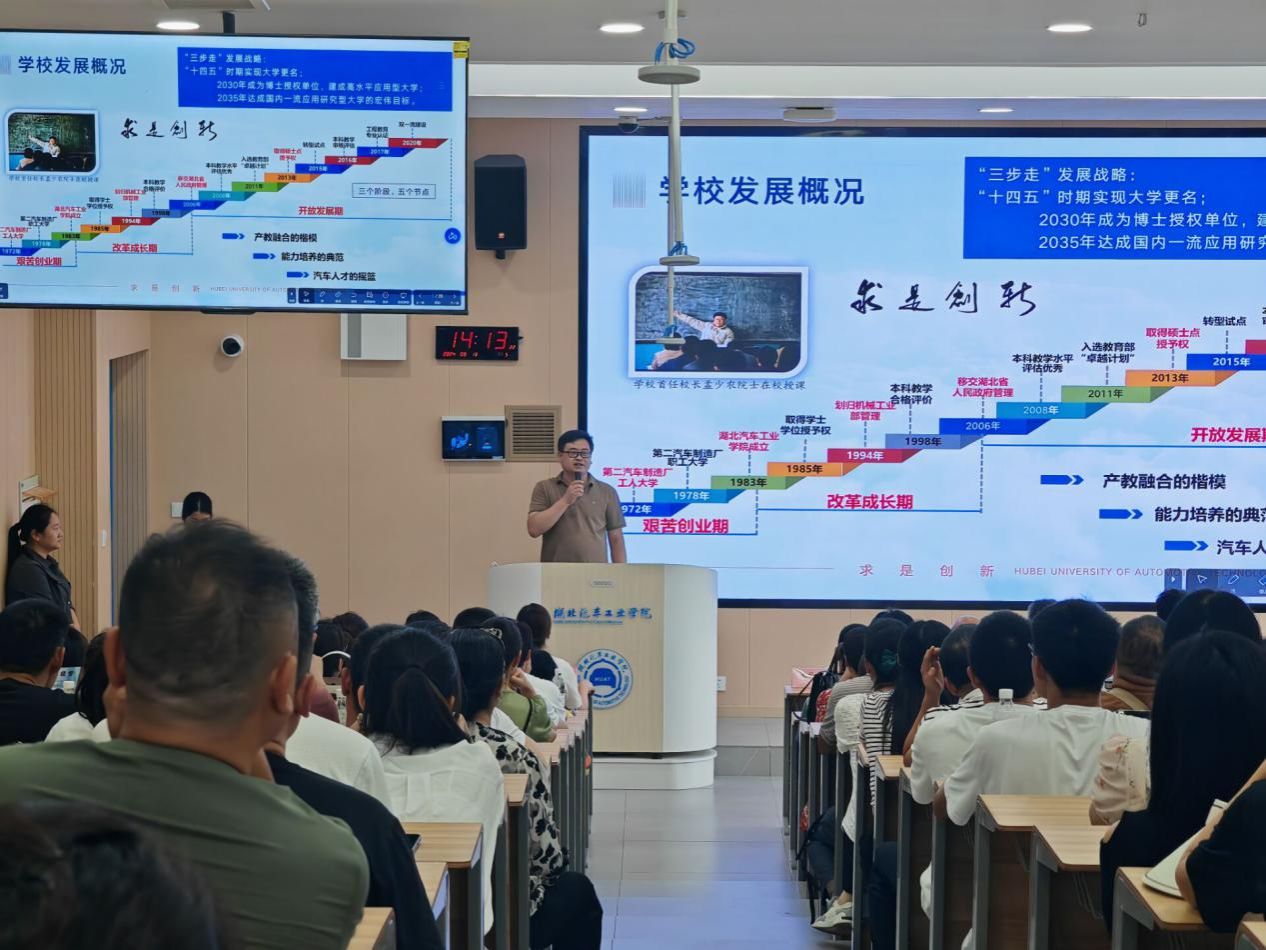会前,新生家长们共同观看了集团宣传片《点亮》,了解公司发展历程和办学理念。周丹代表公司全体师生向顺利考入我院的2024级新同学表示热烈的祝贺!向各位家长的到来表示热烈的欢迎和最诚挚的感谢。随后,王礼华介绍了公司发展规划、团队建设、产教融合等情况。结合公司发展历程,分享公司在团队队伍、专业特色、人才培养等方面的优势和成绩。对全体新生提出三点期望:一是胸怀“两个大局”,心怀“国之大者”,做一名社会主义事业的建设者和接班人;二是勤学笃行、求是创新,做一名优秀的汽院人;三是明志立德,自律自省,做一名新时代四有好青年。
