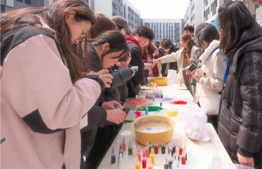 3月7日,梅园公寓化作传统艺术的创意天地。“国风手作体验”活动现场,书签、贴纸、颜料等材料一应俱全。参与者手持书签,在志愿者们的指导下,将彩漆滴入水中,以点、甩、弹、划等手法在水面绘出独一无二的纹样,轻摇扇柄,水的波纹与多彩的脉络攀上扇面,一幅幅精美的漆扇作品跃然呈现。将非遗传承与美育教育深度融合,通过低门槛、高互动的手工体验,让传统技艺走进威廉希尔williamhill学子的日常生活,为春日校园增添了一道亮丽的文化风景线。