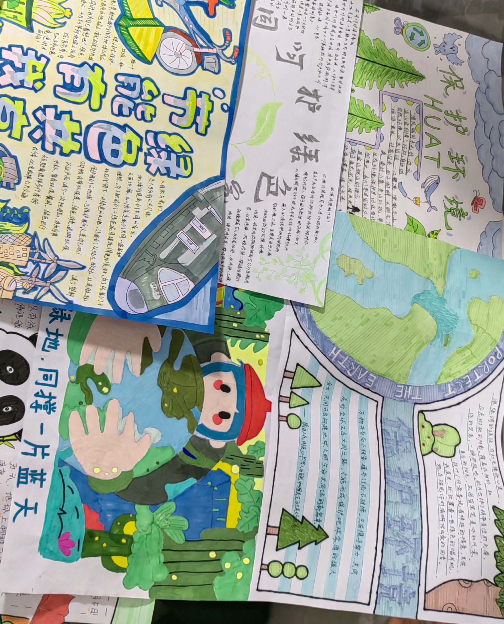 本次手抄报活动共有100余名同学参与,参赛同学组成42支队伍。活动开始前,同学们纷纷摩拳擦掌,准备大显身手。他们或查阅资料,或请教老师,或互相交流,用心准备着自己的手抄报作品。在创作过程中,他们不仅展现了出色的绘画技巧,更将环保理念融入其中,使作品充满了生命力与感染力。在活动收集过程中,一幅幅精美的手抄报作品陆续呈现在大家眼前。有的作品描绘了绿水青山的美丽画卷,呼吁大家珍惜自然资源;有的作品展示了垃圾分类的正确方法,普及环保知识;还有的作品描绘了地球家园的脆弱与珍贵,唤起大家对环保的共鸣。