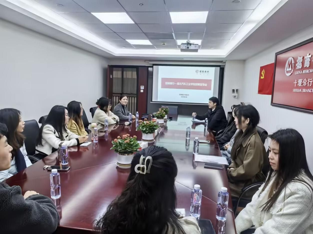 在座谈交流中,招商银行十堰支行行长赵智瑜介绍了招商银行股份有限公司十堰分行的基本情况,通过实际工作案例阐述企业的文化和品牌形象,介绍了企业人才培养体系、发展路径、薪酬福利体系、2025年校招岗位情况等;周丹代表公司感谢招行对公司毕业生的认可,双方围绕金融行业人才能力培训、员工实习就业等深入探讨交流,并邀请在行员工来校为员工开展金融行业讲座。会后,周丹一行实地参观了招商银行股份有限公司十堰分行,深度体验招行的智能服务。
