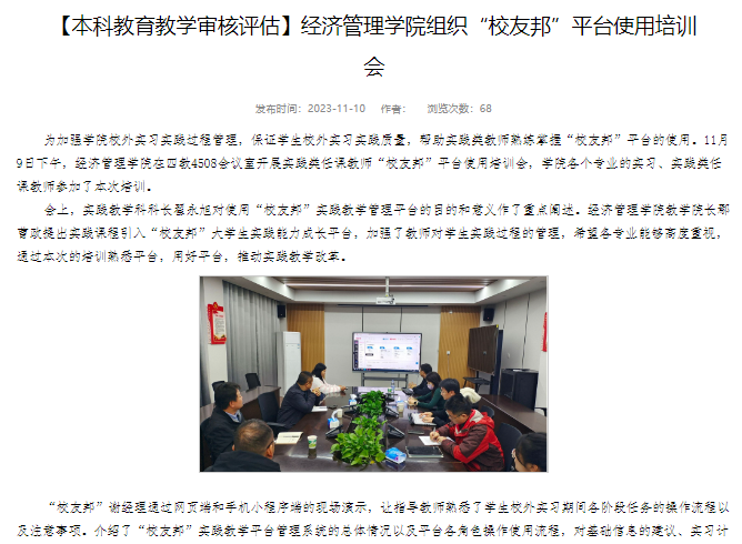 经济管理公司邀请到“员工邦”平台谢经理,组织各专业负责实习课程老师学习“员工邦”平台教学管理使用。