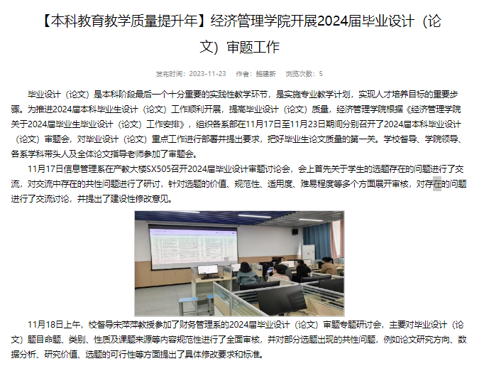 通过院内督导和校督导对2023届毕业设计(论文)抽查反馈问题的汇总,经济管理公司对2024届毕业设计(论文)提出了新的要求和指导性的审题工作部署。