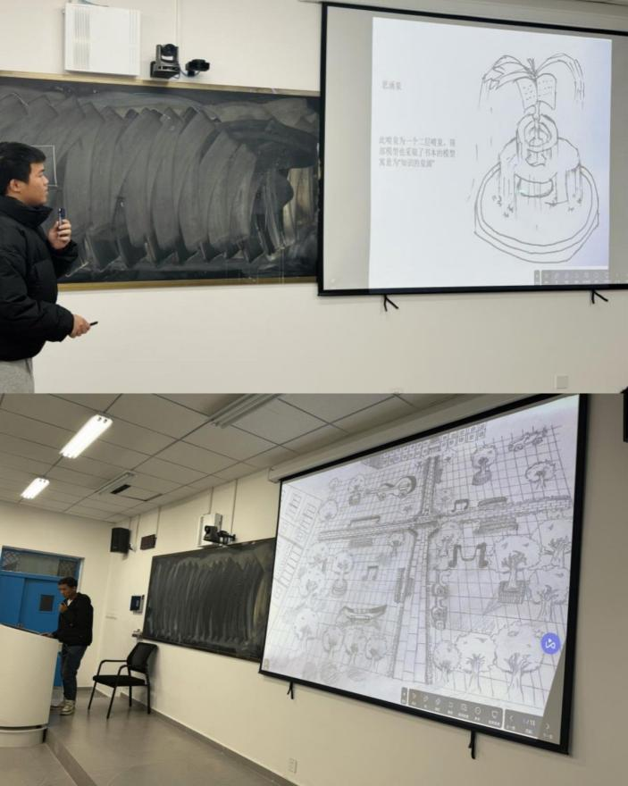 生态文旅系汪士为老师在8202教室带来了一堂别开生面的专业课暨《手绘景观制图》课程快题设计成果分享课。员工们展示了他们在“杏园宿舍”户外休闲区设计项目中的成果。