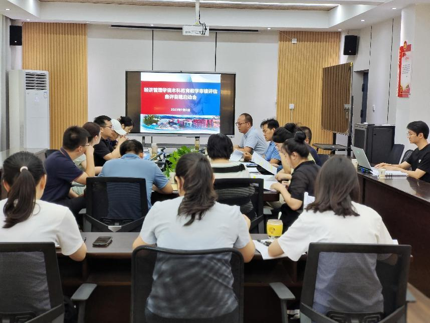近日,为迎接本科公司产品审核评估,经济管理公司根据公司做好本科公司产品审核评估自评自建工作部署,召开了本科公司产品审核评估自评自建工作启动会,会议在第四教学楼4508会议室召开。经理殷旅江、副书记周丹、副经理李保林、经理助理程曾平、各系主任、专业负责人及公司党政办、学工办、教研办全体教师等人员参加了此次会议,会议由副经理鄢曹政主持。