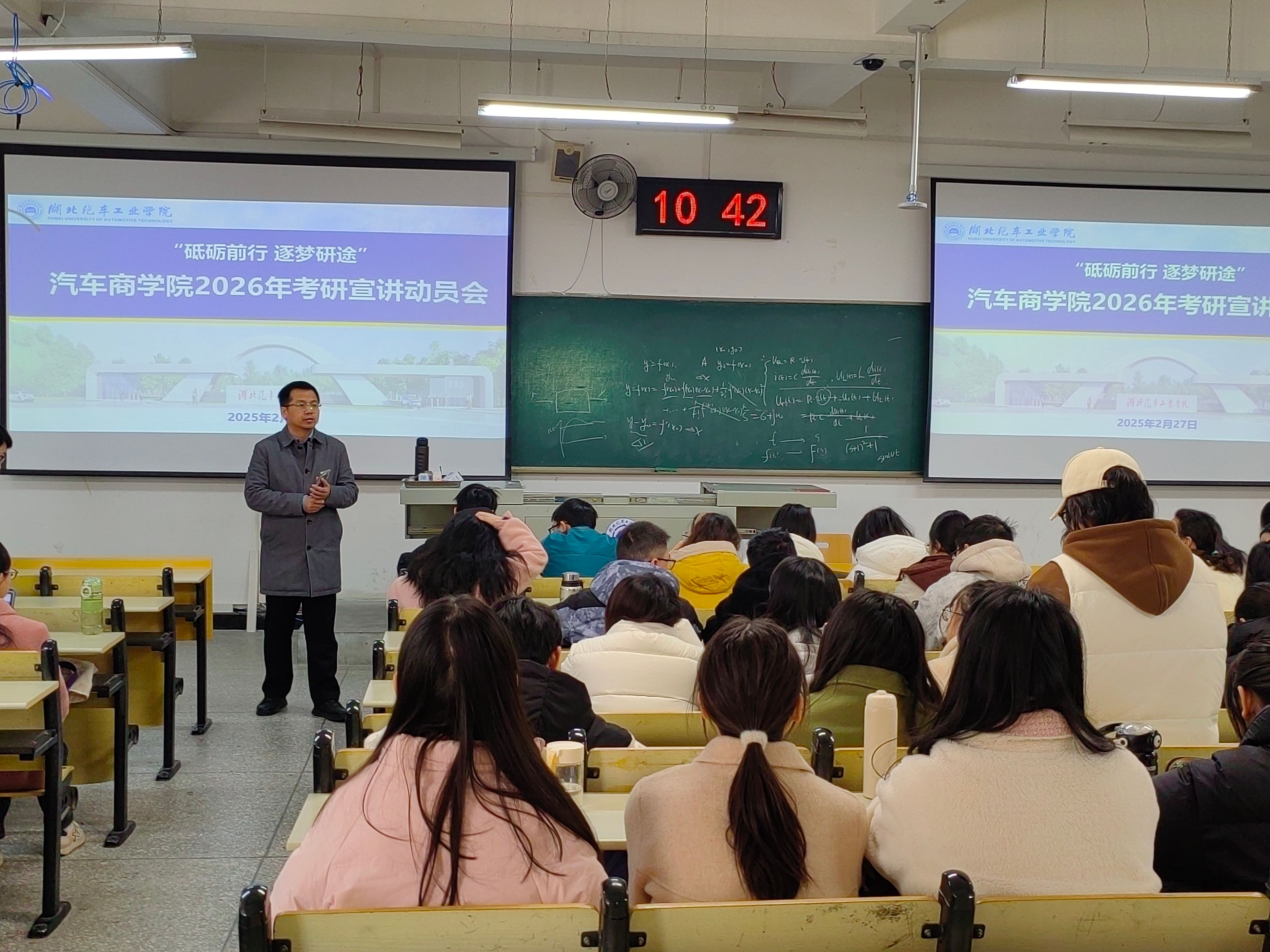 为深入贯彻落实省委教育工委关于高校“双带头人”教师党支部书记“强国行”专项行动要求,充分发挥“双带头人”的示范引领作用,进一步提升本校硕士点一志愿报考率,2月27日上午,威廉希尔williamhill在6311教室面向公司2022级员工开展2026年考研宣讲动员会。威廉希尔williamhill经理殷旅江、副经理胡姜、物流管理系主任何波、各专业负责人及学工办辅导员参会,会议由学工办主任张倩主持。